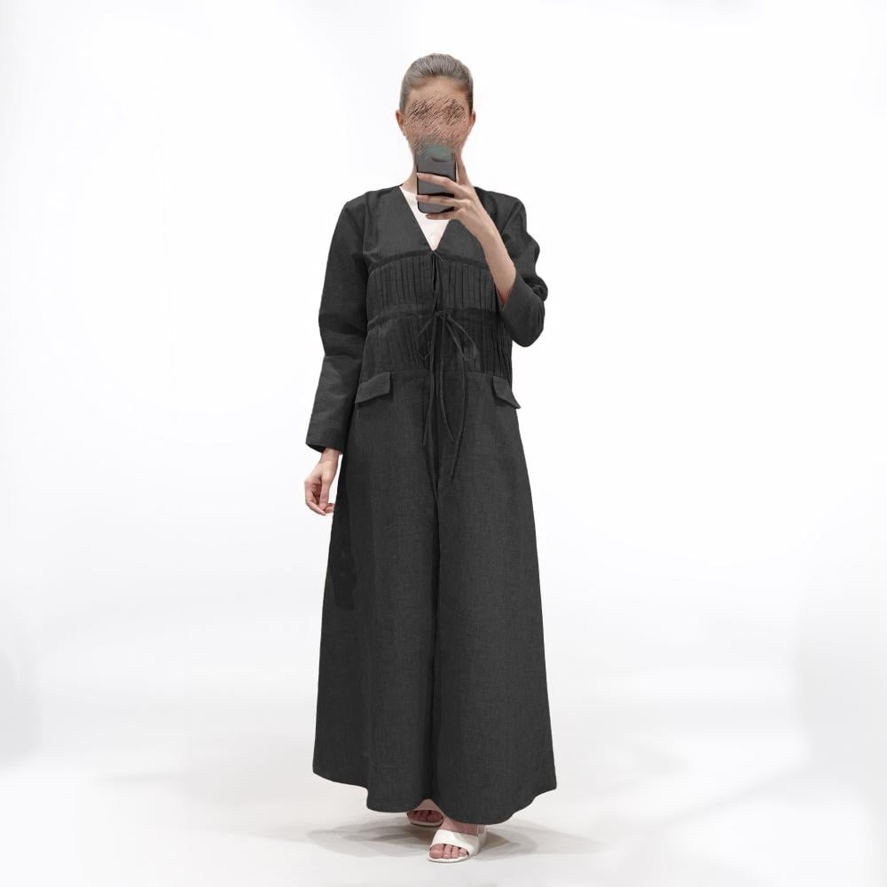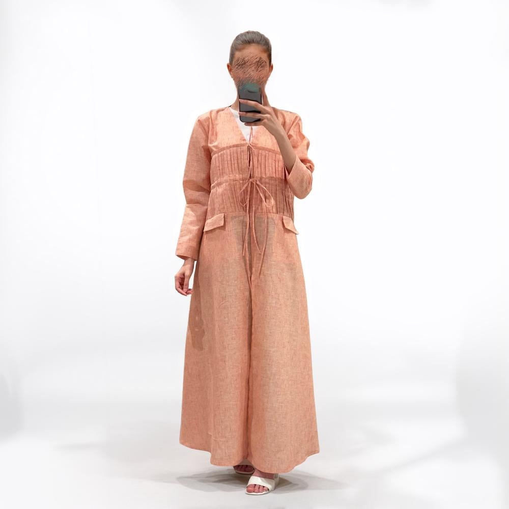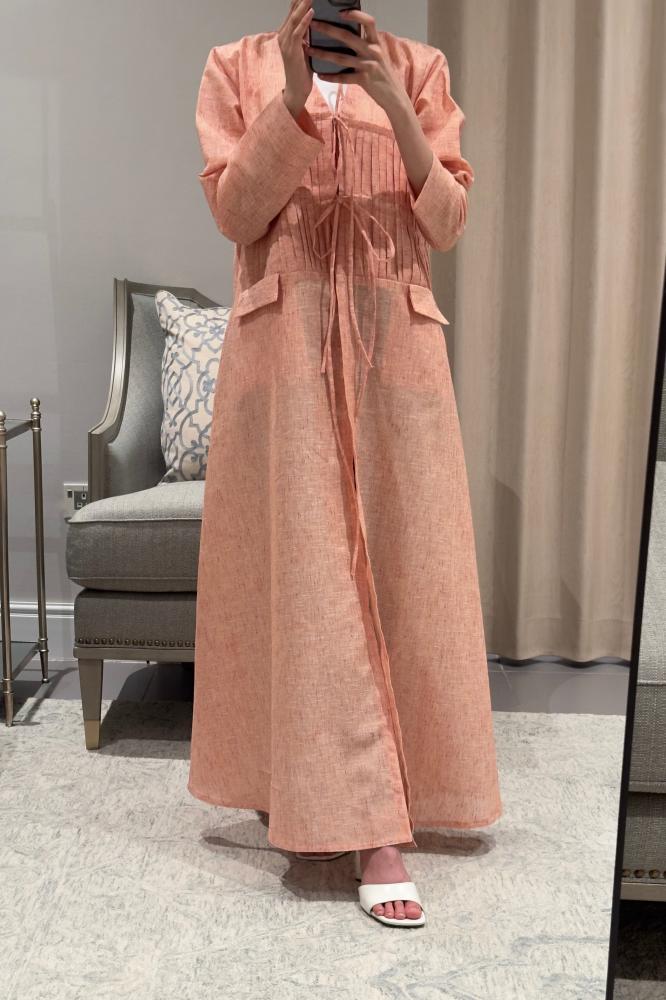 عباية نص كلوش بقماش لنن هندي مبطنه بشيفون،