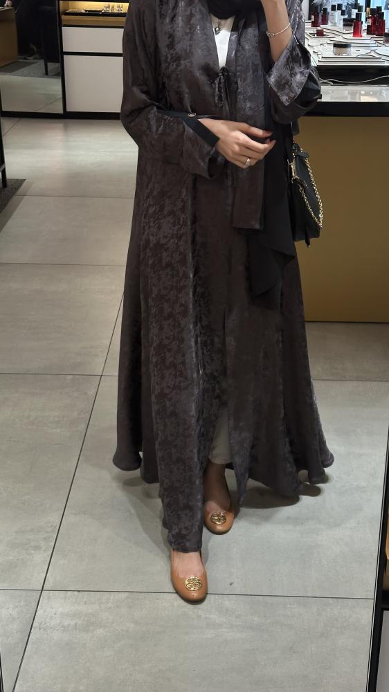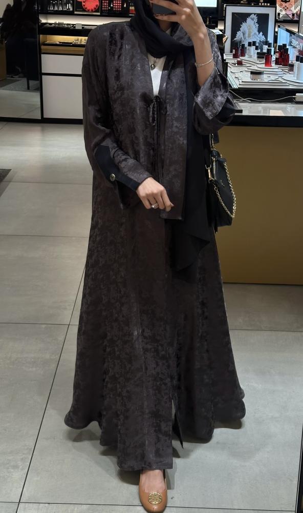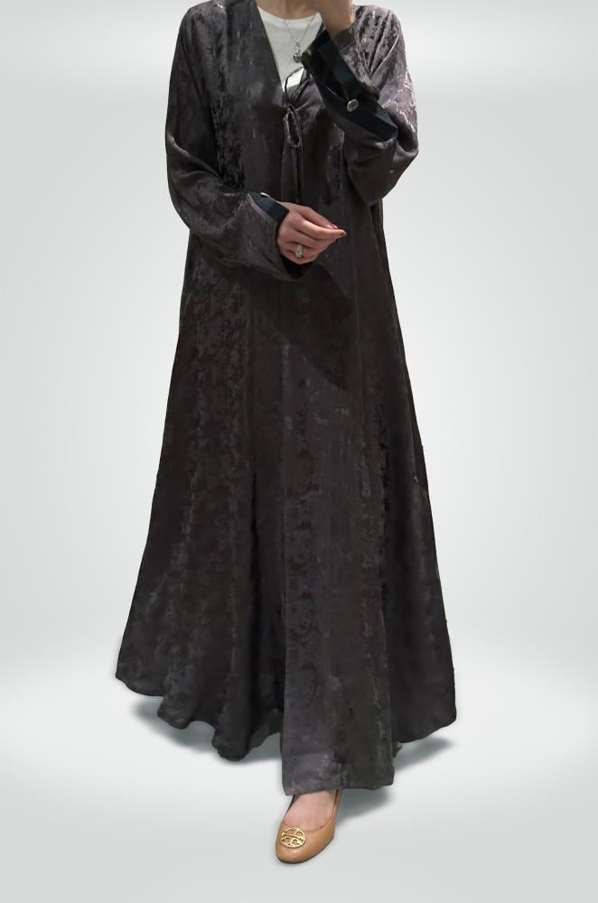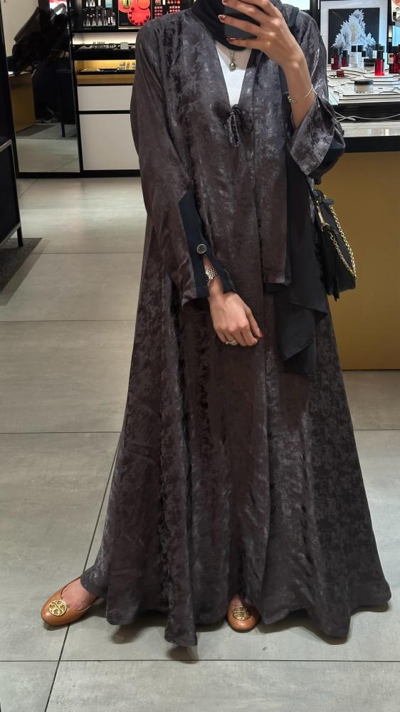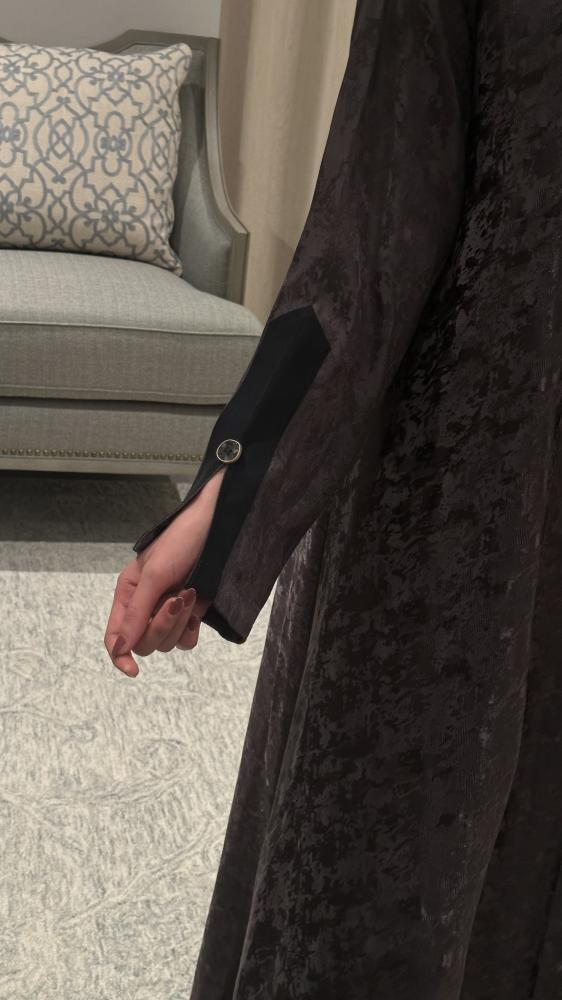 عباية نص كلوش بقماش حرير هندي وتدخيلة في الكم كريب مغسول