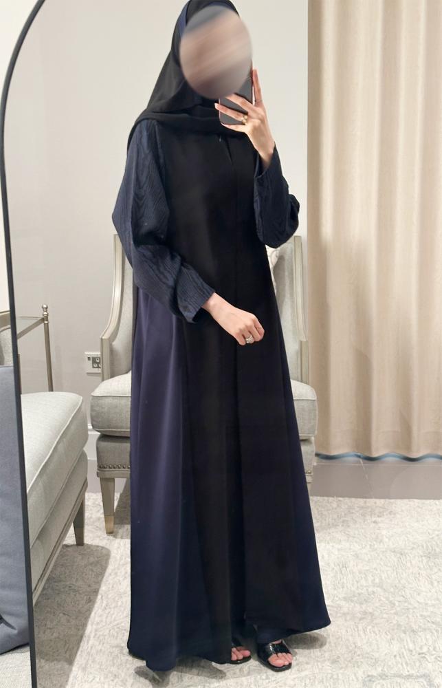 القماش : كريب كوري ، الجوانب كريب كوري كحلي ، الأكمام كريب مشجر
